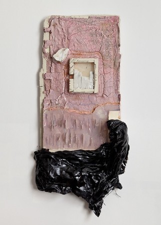 Julie Schenkelberg | HEARSAY March 14 - April 20, 2013 Opening Reception: Thursday, March 14, 6 - 8 pm Artist Talk: Saturday, April 6, 1 pm Asya Geisberg Gallery is pleased to present Julie Schenkelberg's "Hearsay", an exhibition of sculpture and installation. "Hearsay" continues the artist's material investigations into the home's symbolism, the city's tall tales, and buried personal histories. Schenkelberg indulges in the paradoxical plenty of disuse and decrepitude. As with her first exhibition "Bad Blood", she takes inspiration from the Rust Belt's legacy of abandonment, conjuring houses in disrepair, defunct industries, and found shabby furniture imbued with years of memories, equally decaying and still alive. Schenkelberg invents new ways of disassembling and recombining the lived-in furniture with disembodied parts. Teal, yellow, and washed-out pink suggest the Art Deco palette that covered Cleveland in its prime, while shards of white marble echo the trickle-down luxury of middle-class bathrooms from that era. While the claustrophobic "Bad Blood" took over the gallery space, "Hearsay" shows a shift in Schenkelberg's practice towards a stripped down and concentrated density. Her current work traps tension, as entropic elements are pulled together in a small entity. Half-buried shards jut out, and mummified objects struggle. Schenkelberg combines broken-down markers of home - doors and windows, chair legs and dresser tops, and their undercarriage- nails, wire, plaster - constantly asking the viewer to shift scale. Within the recontextualized debris, the work exhibits a macabre aesthetic of hardened sediment seeping through the cracks, drilled holes, and repetitive gashes. Intentionally dirty and primitive, raw and complex, layers of rot are scraped away to reveal the original unsullied surface. Soft and feminine material such as silk is hardened, preserved in resin, effectively trapped and prevented from movement. Broken cups and dishes, familiar tropes of the artist's work, hint at a dysfunctional dainty aesthetic, while cement and plaster connote heft and strength. In the gallery's central installation, a Miss Havisham mansion transforms into piles of wood or a shanty of rusty metal. Marble chunks appear as rubble around black stair spindles rising out of the pile, tied with draping black strips of silk. Furniture is severed, splintered, and recombined almost beyond recognition. The conflict of prescribed gender roles expresses itself in material juxtapositions and fraught relationships of rusty nails and flimsy cloth trying to contain ungainly parts in vain. Schenkelberg's oeuvre reinterprets domesticity as a contemporary position, while plunging into the meaning of decay, towards a reinvention of common material's everlasting fascination and depth. Julie Schenkelberg lives and works in Brooklyn, NY. Schenkelberg received a BA in art history at the College of Wooster, and an MFA at the School of Visual Arts, NY, with additional studies at SAIC at Oxbow, MI, Pont Aven School of Contemporary Art, France, and the Institute of European Studies, Vienna. She has been included in exhibitions in New York, Chicago, and Ohio, and has an upcoming exhibition at the Sculpture Center in Cleveland, Ohio. She was awarded a residency at the Bemis Center for Contemporary Arts and has been named one of the "30 Artists to Watch in 2012" by NY Arts Magazine. |