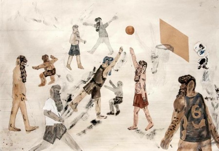 Guðmundur Thoroddsen: HOBBY AND WORK October 24 - December 21, 2013 Opening Reception: Thursday October 24, 6 - 8 pm For Guðmundur Thoroddsen’s second exhibition with Asya Geisberg Gallery, the artist continues his exploration into the tropes of modern masculinity. In “Hobby and Work”, Thoroddsen merges the antiquity-laced bearded busts of male gods with activities such as basketball, hunting, and brewing beer. In his group scenes in gouache, pencil, collage, and ink on paper, men are organized as if in a Byzantine painting, without Renaissance perspective, but rather a staggered organization. Employing an often cartoonish style, Thoroddsen sometimes veers into boyish naughtiness, like dirty doodles carved into a school desk. Thoroddsen charts a circle of manly aspiration: winning a trophy, competing for points, length of beard, or number of birds killed. With a pallid color scheme of vaguely Eastern European or 1930s colors, Thoroddsen’s drawings exist in a timeless haze. The whiff of nostalgia for days of clear gender roles and adherence to expectations of masculinity is undermined by his often sketchy style and blatant blasphemy: the recurrent defecating “gods”, the silly or awkward figuration, the smiling phallus that acts as ultimate emasculation. Along with the works on paper, Thoroddsen continues his carved wooden heads with a rougher style and blended identity. The exhibition includes a collection of ceramic trophies, glazed in soft pastels, again pointing out the sadness of constant and meaningless one-ups-man-ship, tiny awards with steadily diminishing power. The deliberately clumsy and crude handling of both the drawings and sculptures undercuts the quest for perfection and achievement, or perhaps is a reflection of the ethic of “just getting it done” and the fear of “prettying“ it up. In “Hobby and Work”, Thoroddsen starts with the seemingly banal and finds potency in each activity he tries, whether hobby or work, which in his case, solipsistically, is making art. He points to a particularly male fascination with being engulfed by hobbies- mastering a new skill, learning a vast repository of obscure facts, and seeking escape from normal life by shutting oneself within a separate world. Bushy beards connect a contemporary trend with stereotypes of Vikings, ancient gods, and lumberjacks, and yet an artist can feel inadequate compared to explorers and physical doers. As such, the male in Thoroddsen’s exhibition becomes a tragicomic exemplar of the artist, desperately and naively hoping to accumulate manliness but always falling short. Guðmundur Thoroddsen lives and works in Reykjavik, Iceland. After studies in Iceland, Holland, Berlin, and Granada, Thoroddsen completed his MFA at the School of Visual Arts in New York. He has been included in many solo exhibitions in Iceland, and group exhibitions at the Reykjavik Art Museum, (Reykjavik), DODGE Gallery, (NY), Kling and Bang Gallery, (Reykjavik), and Danziger Gallery, (Berlin). He was nominated for the ArtPrize Top 2D Award for his SiTE:LAB show, in Grand Rapids, Michigan. His 2012 solo exhibition "Father's Fathers" at Asya Geisberg Gallery was reviewed in Time Out New York, The Brooklyn Rail, Hyperallergic, and Artforum Critics' Picks. A recipient of a Fountainhead Residency in Miami, FL in 2012, and artist grants from the Ministry of Cultural Affairs, Iceland in 2012 and 2013, his work appears in the 2011 publication "Icelandic Art History from late 19th Century to Early 21st Century", as well as the 2009 New Museum's "Younger Than Jesus: Artist Directory". Asya Geisberg Gallery 537B West 23rd Street New York, NY 10011 (212) 675-7525 [email protected] www.asyageisberggallery.com Gallery Hours: Tuesday - Saturday, 11 - 6 |