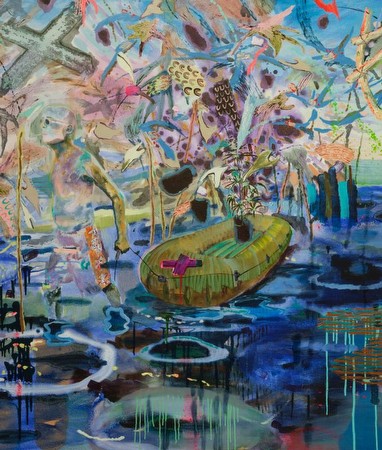 Melanie Daniel Lotus Eaters September 4 - October 11, 2014 Opening Reception: Thursday September 4, 6 - 8 pm Asya Geisberg Gallery is pleased to present "Lotus Eaters", an exhibition of paintings by Canadian-Israeli artist Melanie Daniel. This newest series marks a philosophical shift within Daniel's oeuvre, with a retreat from her previously taut and politically charged milieu into a more languorous hallucinatory landscape. Here, Daniel encodes anxiety based on the turmoil of the Middle East with an increasingly subversive painterly language. While her preceding series "Echo Shield" alluded to an abstracted militarism and surveillance, Daniel's current works initially suggest an idyllic sublimity, only upon closer inspection yielding to a latent content of eerie unease. A post-apocalyptic aura emanates, where quasi-extant lone figures emerge and are in turn disembodied into the murk. The paintings posit a markedly invented language and space, where seemingly peaceful environs slowly suggest a darker edge. A caustic palette, anarchic abstraction, foreign vegetation and tangled marks fight amid a constant flurry of disparate styles. Narratives remain unwritten, as the figure is caught in an oneiric state, disconnected from its environs, unmoored or overburdened with Daniel's whirlwind of cryptic gestures Daniel's newly softened stance belies the conflict that worms its way insidiously into her world. In the titular "Lotus Eater", an allusion to the mythological island-dwellers struck with a narcotic peacefulness, Daniel hints at our utopic wish for apathy. In "Two Shores Away, Still Sloshing", a survivor aimlessly wades beneath a lush overhang, post-calamity, in a psychedelic-colored sky with a curved horizon, towing his lone possession - a marijuana plant. In "Sky's Low Silver" doppelgangers are present in both the lake-reflecting sky and a second ghostly receding figure. Nuclear halos and neon glows subsume the menace of constant conflict, where the individual is absorbed or almost nullified. Influenced by the idiosyncratic narratives of Peter Doig, the impending doom found in Daniel Richter's work, and arch-Canadian painters such as Tom Thompson, Daniel's works expose the hope of escaping back to nature or a hard-won peace as impossible ideals. Every moment carries an aftershock, every place fails to provide refuge from the threat. After studies in Canada, Melanie Daniel completed her BFA and MFA at Bezalel Academy, Israel. Daniel has had numerous exhibitions in Israel and abroad, including solo exhibitions at the Tel Aviv Museum of Art, Chelouche Gallery, Tel Aviv, Kelowna Art Gallery, BC, and Noga Gallery of Contemporary Art, Tel Aviv, among others. Her work is included in collections such as the Tel Aviv Museum of Art, Harvard Business School, and the Brandes Family Art Collection. Daniel's 2012 video piece, "Busted" received extensive press including CBC/Radio Canada, and additional press includes Newsweek, Frieze, Haaretz, Artsy, Beautiful Decay, and the Artists Magazine. Daniel is the recipient of a Pollock-Krasner Foundation Grant, a New York Foundation for the Arts Grant, the 2009 Rappaport Prize for a Young Israeli Painter, a Creative Capital Grant, and the NARS Foundation Residency in New York City. This is her third solo exhibition at Asya Geisberg Gallery. Asya Geisberg Gallery 537B West 23rd Street New York, NY 10011 (212) 675-7525 [email protected] www.asyageisberggallery.com Gallery hours: 11am - 6pm Tuesday through Saturday. |