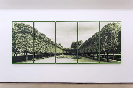 ELIZABETH CORKERY Pictures of Pieces Preview: Thursday 4 June, 2015 / 6-9pm Exhibition Dates: 5 June - 25 July, 2015 Elizabeth Corkery’s first solo exhibition with Beers addresses key concepts from from the artist's practice, including ideas concerning the understanding of architectural space, the reproduced image, and the potentially fraught task of representing three dimensions in two dimensions. In a broad sense, Corkery's practice is one that can be broadly articulated as a continuous and considered mediation of pictures: reproduced pictures, generated from other pictures, or those suspended and separated from their original context. Trained as a printmaker, much of Corkery's work concerns a language that arises through repetition, reproduction, and simulation of 'The Image'. Through a variety of spatial investigations, the work reconsiders the architectural environment as merely a static backdrop through which temporal activity takes place, as though the work operates as a site for the convergence of spatial and representational experience.The works largely employ the medium of silkscreen, either printed on paper or directly onto the rigid surface of thin MDF panels. Scale fluctuates as pieces assume the role of representation, structure or set in a careful negotiation between the display of pictures and pictorial illusion. Upon entering the gallery one is met with Pellerin Curtain (2014), a small gouache illustrating a closed theater curtain, indicating that action that has either recently concluded or is perhaps about to take place. This early reference to the stage is a pertinent one, as Elizabeth’s practice is one that often looks to expose its own production or mode of display, we are privy to the edge of the theatre set, but are also seduced by the potential for transportation. The larger pieces’ in this installation prompt a suspension of disbelief that enables the viewer to see both the picture and the object itself, pushing at the “extent (to which we) can retain our awareness of the means and see the representation at the same time?”[1] Many pieces are either displayed as multiples or as multi-print series, Laurentian Repeat I and III consist of nine large-scale screenprinted panels that take their visual cue from photographic documentation of Michelangelo’s Laurentian Library. Sourced imagery of the staircase is cropped and screenprinted directly to thin MDF panels. Instead of presenting a pictorially convincing scene of receding space, the imagery’s flatness is heightened and the panels move up the wall in perfect repeat. Using the theatre and the garden (both quite cultured and cultivated areas of performance and ceremony) as an evocative and heavily laden site of inquiry, Elizabeth builds upon an almost playful, unassuming thematic foundation, as a structure to simultaneously look whilst physical exist within a staged, wholly fabricated context. Much of this lends to the historical studies around landscape architecture as a current field of research, while harkening back to historically imbued sites such as the gardens of Versailles, or even fantastical avenues of inquiry like the apocryphal and ancient Hanging Gardens of Babylon. The large five-panel screenprint, Hedge Theater II, draws from similar pictorial investigations. They share a scale that establishes for the viewer a bodily context however as they approach a “life-size” scale there is a breaking down of the halftone printed reproduction. As the images enlarge to approach the scale necessary for pictorial illusion, the make-up of the image starts to give way and the corresponding and overlapped dots that make up the picture plane disperse and separate, resuming their role as regulated geometry. As one moves through the installation, smaller pieces jump cut to larger ones, pieces are either contained within frames or provide their own rigid structure; pieces march up the walls, lean or are stacked as if awaiting further action. The work reminds of contemporary sites like Berlin's Pergamom, in which entire ancient ruins have been reconstructed within a museum-space, pushing the boundary between history, reality, and simulacra into fantastical extremes. Now, engaging with film as a structural and temporal connector, Corkery frames the 'experience of existence' as the semiotic moments of incalculability: our recollected experiences within a particular space; personal memory triggers; those split-second cuts between cinematic shots. Here, the viewer places himself within the framework, not unlike the famed and much-theorized Panopticon (the ill-fated 19th Century prison which posits the prison guard at the nucleus with an encirculating ring of cells ) Corkery suggests that this panoramic perspective allows the maximum potential for situating oneself amongst the action. Throughout her imagery and installations, Corkery has combined free-standing structural forms that engage with a physical and present experience, with printed, pictorial representations that connect to time past; a space that has previously been visited or traversed and whose spatiality is now limited to two dimensions where ultimately the viewer becomes the locus for memory, idea, and history. [1] Gombrich, E (1996); 154 Biography ELIZABETH CORKERY (b. 1986, Sydney, Australia) received her MFA from Cornell University, Ithaca, NY in 2013 where she was the recipient of the John Hartell Graduate Award in recognition of excellence in graduate studio practice. She moved to the United States in 2004 after completing her BFA (Hons) in Printmaking from the College of Fine Arts, Sydney, spending two years living and working in Brooklyn, NY before commencing her graduate studies. Elizabeth has received production and research funding from The Elizabeth Greenshields Foundation, Brooklyn Arts Council, Somerville Arts Council, Cornell Council for the Arts and Australian philanthropic organizations The Dame Joan Sutherland Fund, The Ian Potter 