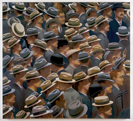 Greg Drasler Dates: September 10 � October 10, 2009 Opening reception: Thursday, September 10, 6 � 8pm New York, NY�August 6, 2009�Betty Cuningham Gallery is pleased to announce an exhibition of new work by Greg Drasler, on view from September 10 through October 10, 2009. It will be the artist�s second exhibition at the gallery, located at 541 W. 25th Street, between 10th and 11th Avenues. The artist will be present for an opening reception on September 10th, from 6 � 8 PM. Included in the exhibition will be approximately ten large canvases, including three interiors and seven hat paintings. Developing out of previous work in this series, the hat paintings present an overview of a group of hatted men crowded onto the canvas creating a tightly knit composition. Although representational, the hats are the notes which unite the canvas into a subtly composed symphony. Drasler continues to develop the hats as a theme because each time he paints an object, �the act of painting repacks these things with new meanings�. The bowler, fedora, newsboy, and boater hats represented in these paintings are reminiscent of the thirties and forties, a period that has always held the artist�s fascination. Like the hat paintings there too is nostalgia for a time gone by in Drasler�s interiors. Although the room interiors do not feature human figures, these dreamlike paintings are not devoid of a human presence, and eerily include objects appearing to have only recently been deserted such as a small toy car at the foot of the chair in Mixed Marriage. This emptiness creates a longing to enter the artist�s dream world, a surrealist nostalgia for these times and places. In Country Place and its upside-down opposite Without Paddle, Drasler lets us enter his Japanese beach house in the first canvas and then flips the painting, removes the floor and we enter his boat house. A native of Waukegan, IL, Greg Drasler received his BFA and MFA from the University of Illinois at Champaign/Urbana. He began exhibiting upon moving to New York in the mid-1980s. Drasler�s work can be seen in the collections of Dow Jones, Inc.; Krannert Art Museum, Champaign, IL; University of Illinois, Champaign/Urbana, IL; New Museum of Contemporary Art, New York, NY: and Thurston Twigg-Smith, Honolulu, HI. Drasler has been the recipient of numerous awards and grants, including a New York Foundation for the Arts Fellowship in 1991 and a National Endowment for the Arts Fellowship in 1993. Currently he is an Assistant Professor at Pratt Institute and has also taught at Princeton University. The exhibition will remain on view through Saturday, October 10, 2009. For further information and/or images, please contact the gallery at 212.242.2772 or [email protected] Next exhibition: Abby Leigh �The Sleeper�s Eye�, October 15 � November 14, 2009 |
