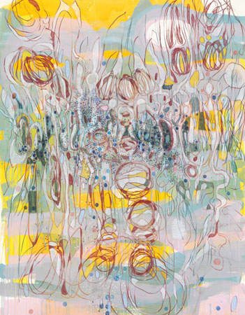 Janaina Tschäpe | Dream Particles June 10th – July 30th, 2011 Opening: June 9th, 6 - 9 pm carlier | gebauer is delighted to announce the third solo exhibition of New York-based artist Janaina Tschäpe with the gallery. Tschäpe approaches her ever-changing microcosm in ongoing series of re-readings and articulations, in multi-facetted attempts of performative approaches to the body, as an organ, a site of illegibility and mystery, of disintegration as well as of creation. Tschäpe’s early performances, her videos, photographies, sculptures, paintings and drawings are deciphering a sense of nature below the surfaces which disunite human life from that of its surroundings. Far from implying a simply idealisation of nature as man’s other, Tschäpe locates one within the other and relayers a worldview, which rises from the creations she mimics as much as from the formal strength of the artistic results of this mimesis. In Tschäpe’s art one finds an urge of expression, which employs whatever medium necessary to articulate a sense of vicinity that is translated into a world of its own, an expanding artistic body of work. Tschäpe’s new series of watercolours, which are now on view for the first time in Europe, condense different formats within themselves. The large scale, multi-coloured, densely filled and layered drawings are presenting their viewers with the transcriptions of a formal concentration as much as with those of a past action. Tschäpe’s watercolours embody, even though their forms remain shifting and ambiguous, a sharp sense of figuration in which the question of identification and recognition are transposed by that of an indiscernible affinity. Facing those large sheets of paper, one is drawn into a dimension of full colours, of round shaped, lingering and floating forms, the outlines of which never eface the artist’s past actions but expose them as being one characteristic of the colours, of the forms, and of the world which arises with them. Tschäpe’s drawings outsize their perceivers, seeing them means facing an interiority beyond the measures of oneself. Germano Celant remarked, that Tschäpe creates a world after the age of the cyborg, her mimetic transfigurations do not fall back into the illusion of a given, but move forward into the spectres of an expanded sense of corporeality in which the classic figure of the nude seems to be inverted, turned inside out. It is sex Tschäpe is dealing with. The genderings of life beyond its subsumption under binary identifications, which starts from her actions as an artist and evolves into sexualised fields of colour and form which do never expose but rather acts out a strong sense of comportment. Linda Nochlin, the great feminist art historian of Modernism, attested that the body in fragments, its mutilation and dismemberment was Modernism’s central trope. In Tschäpe’s work this fragmentation is not taken back, but superceded. Her works emanate from the mutilations of Modernism and find its bonds, its intrinsic intercommunity. Tschäpe’s watercolours bring their viewers into performance and imply them into a shared body, one which opens up a new performative formality, but remains in constant flux. Janaina Tschäpe is participating in the group exhibition "Once Upon a Time" opening in July at the Deutsche Guggenheim in Berlin. In 2012, the MOCA, Museum of Contemporary Art in Tuscon, Arizona will be hosting a solo exhibition of her works. Marko Lehanka | ...endlich wieder daheim! June 10th – July 30th, 2011 Opening: June 9th, 6 - 9 pm „...endlich wieder daheim!“ is Marko Lehanka’s third solo exhibition at carlier | gebauer. The Frankfurt-based sculptor will present a series of new works in the project room of the gallery, works, which populate the room with bricollaged bodies, a series of farce, becoming form. Lehanka’s works are distinctly shaped from the materials they assemble, scraps of wood, cans, empties, nothing too extravagant, but all within the realm of the home. This is where Lehanka’s sculptural installations live. The build a home, a re-initiation of the living spaces, a world in which the globalisation of production returns only in the fabrication tags of the plastic objects, a front garden, which turned upon itself. In installations like „Schöner Scheitern“ (2000) (failing more beautifully) his sense of humour becomes form in ways, which do not simply mock traditional concepts of sculpture but rather take them seriously, proposing that anything can be made into art, if only it finds and artist to form it. Traditional sculptural techniques, such as casting and moulding, return with a vengance here, in objects which have run through the same routines, but in industrial productions, which Lehanka combines with painted wood, concrete molds and handwritten text parts. The production is painly obvious in these bodies, the artists mimics a home-made craftsmanship and shows its possible expansions without mocking it. Lehanka is, to to say, sculpturing from nature, but it is second nature, that which Georg Lukacs characterised as the naturalised world according to capitalist production. There is no moralist tone in what Lehanka presents, rather, one could say that he is suggesting to hold on to the present, in used objects, souvenirs, interior design items, and art historical references, an affirmation arises, which presents a loving egalitarianism in relation to its materials. Lehanka reassembles canonised works, like Albrecht Dürer’s Bauernsäule of 1525 in the materials which might represent their equivalents today and in such proceedings second nature is restaged into the realm of high culture. The state of the present is turned back onto its prehistory and reconquers it for an actualised use value of form. Lehanka’s works mix what is washed up in the present, old-fashioned teapots as well as outmoded electrical items, building a barricade in some ways that holds on, despite al