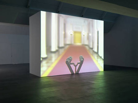 Paul Pfeiffer 6th September � 11th October 2008 Vernissage 5th September, 6 p.m. Tuesday to Saturday, 11 a.m. - 6 p.m. We are delighted to present the third solo exhibition by New York artist Paul Pfeiffer at carlier | gebauer. Pfeiffer, who was trained at Hunter College (NYC), and in the Independent Study Program of the Whitney Museum (NYC), is considered one of the most important video artists of his generation in the USA. In 2006 and 2007 his works were shown inter alia in New York at MoMA and the Guggenheim, as well as at P.S.1. In addition, in 2007 he also realized "The Saints" for ArtAngel, London. Pfeiffer is currently represented at the Sydney Biennale, as well as in the San Francisco Museum of Modern Art. At the end of September "Monologue", the first extensive survey of his work will open in Spain at MUSAC, Le�n. Pfeiffer will be showing three recent works in the exhibition at carlier|gebauer, two of which will be exhibited for the first time. Live from Neverland, 2006 , Caryatid (Red, Yellow, Blue), 2008 and Cross Hall, 2008 are video pieces in which the character of the installation as an object plays a crucial role. Pfeiffer�s work reflects video formats, which are dominating contemporary mass media. Television formats, as well as that of the omnipresent surveillance camera, both of which accompany us in our day-to-day lives, are explored, examining their origins. In Pfeiffer�s oeuvre, these dominant media apparatuses of perception become the starting point for a fundamental artistic reworking. He raises questions about the quotidian hierarchisation and the evaluations of individuals and spaces recorded by mass media events and signified in emblems of contemporary culture. This often occurs through artistic techniques of isolation: by removing the human figures from the image, isolating from the context in which they are embedded, through the repetition of rooms vibrant with meaning. Pfeiffer�s works draw out the eerie and archetypical from the apparently everyday. His art denies the seemingly unquestionable primacy of the visual by reconstructing it in a new modus. Cross Hall, 2008 confronts audiences with live transmission of footage from two surveillance cameras, projected to cover the whole wall. An empty passageway is recorded from the end of a neo-classical corridor, and from a room adjacent to that corridor. Behind the surface onto which the images are projected is a diorama, a model of this imposing corridor, which audiences can only see through a peephole. The actual space remains concealed, whilst the perspective of the surveillance camera defines visible reality and constructs it through the projection. The video work Caryatid (Red, Yellow, Blue), 2008, presented on three black painted monitors, is part of a series of productions in which Pfeiffer juxtaposes revenants and variations on Antiquity�s Caryatids. Whilst these load-bearing figures served as supports in ancient temples, in Pfeiffer�s works they move out of these positions and are erased from the image, as is the case in Caryatid, 2000 , or injured as they fall and incorporated into the image as collapsing, injured figures, as is the case in the current work. Whilst the trophy, seeming to float in the room, was all that remained of the victorious basketball players in the 2000 video, Caryatid (Red, Yellow, Blue), 2008 shows football players crashing to the ground after a foul. The image is divided up on three monitors using a scheme based on the primary colours red, yellow and blue, and is thus dissected into its technical components. Here the video image returns to a painterly task, as run through by Barnett Newman in countless varying declensions. At the same time, these looped television recordings of contemporary heroes become the eternally recurring moment of their tragic and ineluctable failure. Live from Neverland, 2006 shows an exaggerated, heightened version of a television documentary that notched up some of the highest audience ratings over the last few years. Pfeiffer takes the television reportage �Living with Michael Jackson�, which attracted an audience of twenty-seven million viewers in the US, and filters out precisely the eleven minutes in which Michael Jackson talks about having shared his bed with several children on his �Neverland� estate. It was this recording that triggered the charges of sexual abuse brought against Jackson. Pfeiffer shows Jackson talking on one monitor without any sound and at the same time has the images accompanied by a choir in a large video projection filling an entire wall. Assuming the form of an ancient Greek choir, the group of around 80 singers recites Jackson�s words, perfectly synchronised to his lip movements. Here again the spatial construction of the work plays a crucial part in how it is perceived and here too figures from Antiquity are introduced as a fixed reference point, deployed in a re-staging of the present. Paul Pfeiffer (born in Honolulu, Hawaii 1966). Lives and works in New York City. Solo exhibitions: 2008: MUSAC- Museo de Arte Contempor�neo de Castilla y Le�n, L�on, Spain; 2007: ArtAngel, London, United Kingdom; 2006: MC Kunst, Los Angeles; 2004: K 21 Kunstsammlung, D�sseldorf; 2003: Museum of Contemporary Art, Chicago; List Visual Art Centre, MIT, Cambridge; 2002: Orpheus Descending, Barbican Art Centre, London; UCLA Hammer, Los Angeles; Whitney Museum of American Art, New York. Group exhibitions: 2008: Biennale of Sydney, Australia; San Francisco Museum of Modern Art, San Francisco, CA; 2007: Automatic Update, Museum of Modern Art, New York, NY; The Shapes of Space, Guggenheim Museum, New York, NY; 2006: Visions du D�luge, Le Mus�e cantonal des Beaux-Arts de Lausanne Palais de Rumine, Lausanne, Switzerland; The Gold Standard, P.S.1 Contemporary Art Center, New York, NY; Full House: Views of the Whitney�s Collection at 75, The Whitney Museum of American Art, New York, NY; 2005: Rundlederwelten, Mart