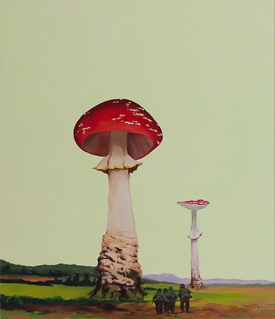 GAMA: Idylls of the Kings March 7 – May 3, 2015 Chambers Fine Art is pleased to announce the opening on March 7, 2015 of Gama: Idylls of the Kings. GAMA was born in Mongolia in 1977 and currently lives and works in Berlin. GAMA was born into a nomadic family and would move every four months as the seasons changed. His great aunt was an important shaman whose ability to connect with the supernatural world had a profound impact on the young boy. He eventually enrolled at the Central Academy of Fine Arts (CAFA) in Beijing where he studied oil painting. Finding that the prevailing academic approach did not satisfy him, he started looking at the works of European Old Masters in art books and pondering the works of contemporary German painters such as Georg Baselitz, Sigmar Polke and Gerhard Richter. Thus Beijing was a brief hiatus between the country of his birth and Germany, the European country which seems to have the greatest affinity with the mysterious and uncanny, the birthplace of countless myths and legends not to mention the Brothers Grimm whose fairy-tales still enchant. In 2002 he gained entry to the Karlsruhe Academy and in 2007 became a master student under Gustav Kluge. During this period he was exposed to the figurative painting of the New Leipzig School and soon found that the painterly skills and techniques he had mastered in Beijing could be used for entirely different ends than the more prosaic task of recording appearances. When we look at GAMA’s paintings we are never allowed to forget that an oil painting is just that – oil paint squeezed from a tube and applied thickly or thinly on a primed canvas. Very often the main image which does not quite reach the edge of the canvas is surrounded by a thick layer of paint, leaving the impression that it could be peeled off to reveal a blank canvas. Elsewhere, dripping accumulations of paint question the illusion of three dimensional spaces. Scale is constantly called into question and inside becomes outside. Mushrooms the size of trees dominate Manoeuver, while in others furniture towers over human figures or vice-versa. Figuration disrupts abstraction as we see so often in the Riding Alone for Thousands of Miles series of paintings in which there is always a contrast between the sky and the land, one of which is conveyed as a passage of abstract painting that echoes Gerhard Richter while the other is represented naturalistically. A dramatic example of this device can be found in Armored Car which is divided into four zones – a lonely traveler in the lowest zone, a band of clouds in the next followed by a range of mountains and a cheerful checkered sky into which a tiny lamp hangs from the top edge of the canvas. Mushrooms, manikins and other low-life characters also meet high culture as GAMA has a strong attachment to a broad cross-section of Western Old Master and Nineteenth century painting. The attentive viewer has no trouble in identifying references to Vermeer, Rembrandt, and Courbet among many others in these quirky interiors. Not surprisingly, German Romanticism is very much in evidence. Caspar David Friedrich’s great masterpiece The Sea of Ice (1823-24) is revived in Sacred Flame, the frozen wastes of the original parting to reveal a colorful shipwreck in the bottom right-hand corner of the painting. All of this might be too much to take were it not for the fact that GAMA’s erudition is only one component of his thoroughly enchanting update of the world of the imagination that used to prevail before the universal acceptance of computerized fantasy. He is no longer a nomad but he offers insights into the world of the imagination that his previously unfettered way of life offered in abundance. For more information, please contact the gallery at +86 (0)10 5127 3298 or [email protected] |