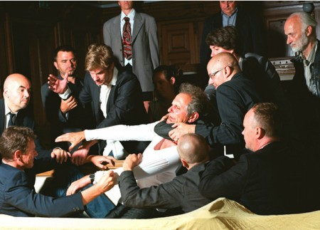G.R.A.M. Hohes Haus Duration: 14. 09. - 22. 10. 2011 The House Here we see something coming together that actually does not belong together. When the parliamentarians let off steam in their verbal disputes by means of force, democracy reveals an absurd side. Common sense says that the use of force stands in contradiction to a civilized political culture, which parliaments should seek to uphold. Yet all over the world disputes on different practical issues result in physical confrontations. Pictures of more or less outright scuffles can also be found in parliaments in Asia and Europe, and more recently well-known cases of such incidents have taken place in South Korea, Thailand, Ukraine and Turkey. Press shots capture these momentary impressions of political agitation – usually displayed by men. What we see are groups of individuals frozen in a certain posture, with parliamentarians being strangled or beaten, shoved, kicked and the like. In such scenes the depictions of heightened passion recall (Baroque) paintings with their religious motifs: light-and-dark scenes, teamed with mannerist poses, pathos-laden arm positions, grimacing or bodies in dynamic contortions. G.R.A.M., an artists’ group from Graz, has singled out ten motifs from scuffles in international parliaments and had extras reenact them in a real-life political location – the municipal assembly hall of the City of Graz. This re-enactment refers to different readings of contemporary pictorial documents, exploring the realism of the medium of photography. The staging of spontaneous acts is both disorienting and unsettling and also raises issues. What are the reasons for aversions among men? Is it a depiction of reality or a performative act? With the re-enacted series of politicians that have resorted to physical force G.R.A.M. also constructs a thematic link to their project of 1999 Unschuldige Anarchisten (Innocent Anarchists), in which scenes from the slap-stick-style Stan & Olli films were re-enacted. |