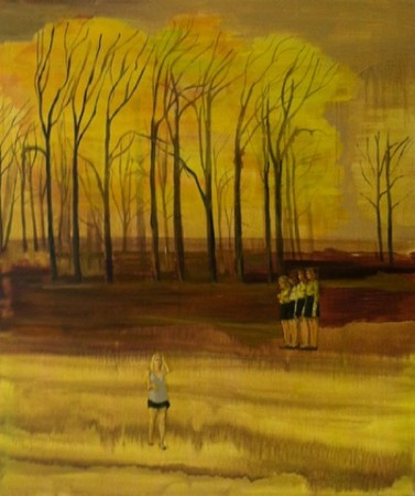 David Castillo Presents Picaresque February 11- March 31, 2012 Reception Saturday, February 11, 6-9 pm David Castillo Gallery is pleased to present Picaresque with works by Harumi Abe, Vera Iliatova and Yui Kugimiya. Abe, Iliatova and Kugimiya use oil on canvas to elucidate home as a perpetual maturation of dasein relative to the human body and its environment. Home is not a haven but a hermeneutics of suspicion ripe for deconstruction and contradiction. The motility of being-at-home is picaresque. Abe, Iliatova and Kugimiya striate the trope of the road of life into an episodic journey of the phenomenological anti-hero. In the tradition of Mary Cassatt's domestic scenes, the picaresque home is expressive yet unsentimental, real yet nonessential. The picaresque home is an evolutionary resting posture consistent only in its appetite for line, color and texture. Harumi Abe is at home under a Panopticon whose sphere of influence matches global proportions, breeching culture and infrastructure. Abe's paintings permit a poetics of space that Bachelard describes as nothing less than a cosmos, or nothing more than the house as man's first universe. Abe is comfortable with skeuomorphic objects that abandon the concept of the fixed original. Her roads become bridges appearing to lift off the terrain of linear destination. Her clouds appear to escape from the sea. She situates her man-made structures between the parentheses of landscape where they may know the proximity of destruction and Derridean deconstruction, the vulnerability of architecture in the elements, and the power of windows that are eyes in the soul Vera Iliatova weaves the epistemic body into the half-light of her canvas. It is a loose narrative fabric that holds her oils while breathing between time that is neither dawn nor dusk, figures that are neither children nor adults, and performance that is neither play nor ritual. Iliatova's eyelet canvas sees the contradiction of privacy afforded by public space, the curious ubiquity of urban parks where girls gather and separate like the perpetual coming of age of an autopoietic organism. Iliatova calcifies the isomorphism between girl and tree, limbs and branches. She enunciates valence in embodiment and locative space like gems set into a bracelet. Iliatova's figures are both rarified and machinic. They are of the spontaneous earth and the curated plane. What came first, the jewelry or the wrist? The embrace or the body? The sensation or the touch? Exposed to natural elements and the artificial inference of the free-ranging city, Iliatova's figures open to the only constant of dynamism. They are one another's zeitgeists in T. J. Clark's terrain vague. They are nuclear in their simple affects of creation and destruction. Yui Kugimiya takes elemental temperatures by hand. Earth, wind, fire and water vibrate at normothermia. The guiding hand is a procedural gesture through hot and Icy Flame and through Morning Evening. Like her application of oil paint, accumulated to sculptural terrain that will remain wet for years, Kugimiya informs contemporaneity with Japanese mujo, for which immutability gives way to disappearance and emergence. Home is not an absolute, but an autocade of leaks. Kugimiya pursues a home for the human body, which is mostly water bifurcated by the current climate of events such as Wikileaks and the tsunamis of global climate change. The materiality of Kugimiya's paintings is at home in the baroque morphology of sublimity and catastrophe. Abe, Iliatova and Kugimiya locate picaresque being-at-home at its most powerful groundswells. To be at home is a political act that embraces inertia without direction or destination. Like the traveler in Robert Frost's "Stopping By Woods on a Snowy Evening," Picaresque renders momentary equilibrium. Using figurative and natural imagery, Abe, Iliatova and Kugimiya gesture toward homemaking as a subjective extension of the nervous system reaching beyond the fingertips down into the earth, up into the sky and across hills and forests. The artists in Picaresque render home at the material, cellular and experiential levels. Their being-at-home wills paint toward canvas, the body toward resilience and the traveler toward her next intermissive rest. Harumi Abe lives and works in Hollywood, Florida and has been the recipient of prestigious awards and residencies such as the South Florida Cultural Consortium, Vermont Studio Residency; and holds an MFA from Florida International University. Vera Iliatova lives and works in Brooklyn, NY and received her MFA from Yale University. The artist has exhibited extensively and has had her work reviewed in many important publications including the New York Times. Also living and working in Brooklyn, NY and holding an MFA from Yale University, Yui Kugimiya has exhibited internationally and has participated in significant residencies such as the Skowhegan School of Painting and Sculpture. Among the collections the artist's work is in, is the Museum of Modern Art, New York. |