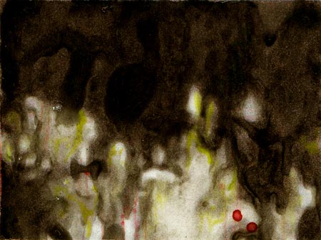 Fugue. Audience 1 (close up) 6 x 4.5cm Inkjet, Watercolour and Glitter on paper 2008 |