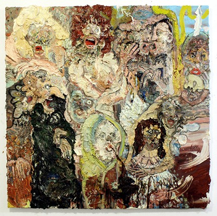 FTW Connie DK Lane Ian Larson Curated by Jason Ramos Negativity, cynicism, bleakness, nihilism, solipsism, hopelessness, fatalism, mortality, entropy, decay, decline, misanthropy, anxiety, fear, despair, dread, apocalypse, existential nausea. Such dark themes found prior articulation within the cultural vanguard of Los Angeles. From the lashing, chaotic youth culture depicted in Penelope Spheeris’s The Decline of Western Civilization, to the hellish, conceptual landscape that was Paul Schimmel’s Helter Skelter exhibition, the work of Lane and Larson can be viewed both as contemporary carriers of similar notions and as direct heirs to specific strains of inquiry that inhabit and define the inspiring wasteland of LA. As fear and tumultuousness in the world grows, the merit of darker, more aesthetically challenging approaches and concepts emerge. Larson’s McCarthy-esque, nightmare bacchanals of paint and viscera are paired with Lane’s entropic artifacts of unsettling humanoid presence, opening up avenues of response to artists who, like all of us, must bear witness to the world into which we are thrust. Apocalyptic, carnal, confrontational visions and bloated, hulking ur-figures of necrotic vanitas are aesthetically and conceptually expounded upon, emerging in a state of vivid subtext and arresting presence — fuck the world, for the win. Opening reception Saturday, January 10th, 2015, 7-10 pm On view until February 8th Gallery hours San & Sun 1-5 pm |