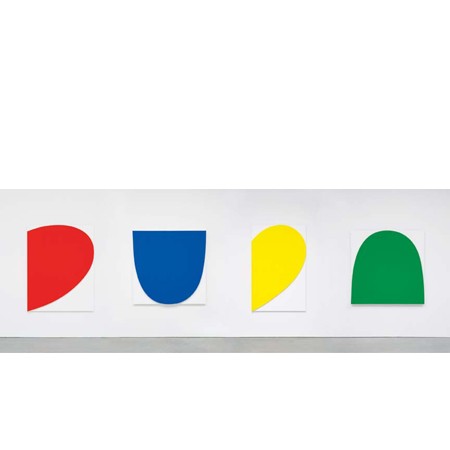 Oil on canvas, 4 parts: Red: 70 x 54 1/4"; Blue: 60 x 60"; Yellow: 70 x 44 1/2", Green: 60 x 60" |