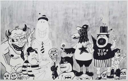 Mario Ybarra Jr., S.A.to L.A., 2009, Ink and acrylic on paper, 70 x 105 cm / 27.5 X 41.5 in.