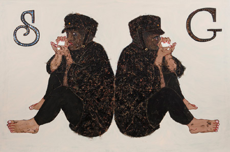 Rik Meijers, Heringa/ Van Kalsbeek, Andrea Lehmann Saturday, January 16th, 2010 to Saturday, February 20th, 2010 Aschenbach en Hofland presenteert een groepstentoonstelling met nieuwe werken van Rik Meijers, Heringa/Van Kalsbeek en Andrea Lehmann. Deze tentoonstelling introduceert Aschenbach & Hofland Galleries met trots het werk van Andrea Lehmann (1975 Duesseldorf). Deze presentatie is een voorloper voor de solo expositie die Andrea Lehmann in september 2010 in de galerie krijgt. Lehmann cre�ert installaties van schilderijen. Hierin combineert ze een eclectische inhoud met een schilderkunstige virtuositeit. De visuele wereld die Lehmann ons presenteert is een chaotische wirwar van voorwerpen, ruimtes, personen en handelingen met de dynamiek van actiestripverhalen. Wat alles met elkaar verbindt zijn vrouwelijke archetypen; bruiden en profetische maagden, Ophelia en Sneeuwwitje, hysterisch, uitbundig en altijd mooi. Het werk van Lehmann wordt onder andere verzamelt door de Rubell Family Collection in Miami en de Saatchi collectie in Londen. Liet Heringa (1966 Den Bosch) en Maarten van Kalsbeek (1962 Oegstgeest) werken sinds 1998 onder de naam Heringa/Van Kalsbeek. De gelijkenis van hun werk met de taal van het abstract expressionisme is evident. Hun werken zijn als werken van De Kooning of Pollock maar dan vrijstaand en in de derde dimensie. De werken zijn geassembleerd uit verschillende materialen en komen voort uit een combinatie van technieken. Onbeheersbare krachten doen hun werk (verhitting, stolling, verwering) naast beheersbare, als stapeling, assemblage en montage. Materialiteit en fysieke uitdrukkingskracht zijn typerend voor het werk. Natuur in al zijn grilligheid, onvoorspelbaarheid en woestheid is hun belangrijkste inspiratiebron. Het werk van Heringa/Van Kalsbeekwas onder andere te zien in solo-exposities in Het Stedelijk Museum CS in Amsterdam, het GEM in Den Haag en recentelijk in Museum de Fundatie in Heino. In de schilderijen van Rik Meijers (1963) is onomwonden te zien hoe de onderwerpen en de manier van werken ontleend aan zijn volkskunst en de kunst van psychiatrische pati�nten en daklozen, de zgn. folk art of art brut. Het is de dwingende manier hoe de onderwerpen zich presenteren, het gebruik van ongewone materialen als bierdoppen, kippenveren en zaden en de wereldvreemde positie die de kunstenaar inneemt in het dagelijks leven en waaruit de beelden ontstaan. In 2001 won Meijers de prestigieuze Wolvecampprijs. Hij had de afgelopen jaren museumtentoonstellingen in het Fries Museum Buro Leeuwarden en Museum Het Domein te Sittard. |