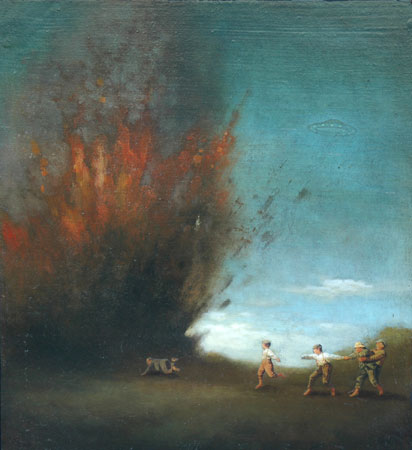 Manifest Announces Three Solo Exhibits Opening December 10th Showcasing artists from New York, Tennessee, and Pennsylvania Manifest is excited to devote three galleries to three solo exhibits for the first time in its history. Arthur Brum, Ivan Fortushniak, and Billy Renkl will exhibit very diverse bodies of work which nevertheless find a unified thread through subtle relationships of media and content. Two of the artists, Brum and Fortushniak, each hold degrees from the University of Cincinnati, but each has since endeavored abroad, and now return to Cincinnati for this exhibition at Manifest. All three artists employ varying collage/assemblage approaches to the realization of their final works. And each in his own way presents work dealing with a sense of the miraculous. BRUM | FORTUSHNIAK | RENKL A HUNDRED FLOWERS CAMPAIGN Works by Arthur Brum with a pinecone Main Gallery Opening Friday, December 10, 6-9p.m. Exhibit continues: December 11, 2010 - January 7, 2011 Curated by Tim Parsley Through a playful variety of both subject matter and medium, Arthur Brum�s work alternates between text, image, and sculptural form in an attempt to provoke the viewer into a more complex viewing experience. Using an array of voices, ranging from sincere to sarcastic, Brum gathers the attention of both believers and skeptics. A constant within the work is a concern with motif, device and self-consciousness along with a love of unusual material. Arthur Brum was educated at the University of Cincinnati and received his MFA from Yale University's School of Art. He currently lives in Brooklyn, New York. He is also a long distance collaborator with Cincinnati-based art gallery CS13 and other Cincinnati artists. LOOKING UPWARD Paintings by Ivan Fortushniak Drawing Room Opening Friday, December 10, 6-9p.m. Exhibit continues: December 11, 2010 - January 7, 2011 Curated by Tim Parsley Responding to a pluralistic cultural mix of philosophies, religions, theories, and standards of morality, Ivan Fortushniak�s work blends a continuance of 19th century American painting with contemporary concerns about such weighty issues as the abuse of the environment and the embattled state of the human soul. Deeply informed by his personal faith, Fortushniak�s work navigates between paint, collage and text, revealing poetically tense narratives that evoke both nostalgia and critique, as well as a considered investigation of spiritual truth. After receiving his BFA from Kendall College of Art and Design, Ivan Fortushniak earned his MFA from the University of Cincinnati. Currently he is an assistant professor of painting and drawing at Indiana University of Pennsylvania. PLAN FOR A GARDEN Recent Works by Billy Renkl Parallel Space Opening Friday, December 10, 6-9p.m. Exhibit continues: December 11, 2010 - January 7, 2011 Curated by Jason Franz "The old, retired, images and documents that I use, many from antique grammar school texts, allow for the possibility of meaning and metaphor in their peculiar beauty and often accidental aesthetic. In these images, diagrams, and maps, the world is represented as both sensible and miraculous, systematic and astonishing. These images were originally made to be clear and objective, a rational distillation of a mechanical world. Instead and in addition, though, they are now rich in beauty and poetry." Originally from Birmingham, Alabama Billy Renkl attended Auburn University (BFA, Visual Communications) and the University of South Carolina (MFA, Drawing). He has taught drawing and illustration at Austin Peay State University in Clarksville, Tennessee for nineteen years. His work has been featured in many solo and group exhibitions, including solo shows at The Cumberland Gallery (Nashville, TN), Marguerite Oestreicher Fine Arts (New Orleans), Vanderbilt University, The University of Kentucky, The Tennessee Arts Commission, and the Galerie Neue Raume (Berlin, Germany). He has work in several permanent collections, including The University of Alabama at Birmingham, Kiwanis Club International, The Tennessee State Museum, and The College of Notre Dame, Baltimore. In addition to gallery exhibitions, he has worked with many clients on illustration projects, including SouthWest Airlines, How Magazine, Vanderbilt University, Klutz Inc., Strategy & Business, The River Styx, Poems and Plays, and Rigby Publishing. This exhibit continues Manifest's ongoing commitment to explore the often ignored and under-appreciated gray areas between the ends of the spectrum of art and design. |