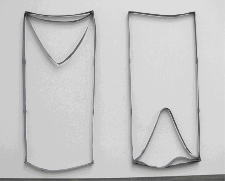 3 February � 13 March 2011 ALEANA EGAN - 'At intervals, while turning' The Drawing Room is delighted to announce Aleana Egan�s first solo exhibition in London. Drawing plays a significant role in Egan�s work, with a sketchbook providing a repository for the noting down of ideas and experimentation with forms that undergo many changes as they are transformed into collages, sculptures or films. Ideas are triggered through observation of her surroundings, be it the Irish landscape or the space in which she makes or exhibits work, and through memories of childhood experiences and works of literature. Her works evolve through a series of stages, with each successive layer gaining a density until the final form emerges, coherent and cogent, yet insistently resisting the stamp of the finite. The meandering, sensuous line that dominates her sculptures, films and drawings suggests a condition of flux. Egan often works with very crude materials such as cardboard, plaster and concrete, and her sculptures are painted with carefully mixed, matt and muted colours of greys and blues. There is a fine tension and taut balance in all her work regardless of material or position in space. Her hanging hand-made sculptures made of cardboard and filler appear utterly opposite to the hard line and tension of the steel sculptures. Her new 4 metre high steel sculpture titled Binet�s addition, is based on Emile Zola�s novel Au Bonheur des Dames - an observation of one of the most famous department stores �La Bon Marche� and the French architect Ren� Binet, who created the iron-framed elevator for Parisian shops. In a recent series of works, the steel and more fugitive materials are combined as in particular and what differentiates - two rounded steel structures which harness slab-like forms filled with mortar and pigment. In a new work Outfit, Egan literally photographs her models, mostly friends and family, from the neck down wearing a variety of outfits. Standing with their back or front to the camera, these are objective recordings: each figure stands motionless in the same light and same conditions. It is the shape of the form, the colour and visual composition that interests Egan. She does not wish to tell stories or make grand gestures but to find appropriate forms to render psychological states and experiences. An artists� book will be published by the Drawing Room to coincide with the exhibition. Aleana Egan was born in Dublin in 1979 and lives between Berlin and Dublin. Recent solo exhibitions include Mole Vanvitelliana, Ancona (2010), Temple Bar Gallery, Dublin and Art Basel Statements (2009)and Kunsthalle Basel, Switzerland (2008). Recent group exhibitions include Sculpture Center, New York (2010), 5th Berlin Biennale, Berlin and Kunsthalle zu Kiel (2008). For more information please contact Mary Doyle or Kate Macfarlane at the Drawing Room. [email protected] 00 44 207 729 5333 The exhibition is kindly supported by Culture Ireland and Stanley Thomas Johnson Foundation |