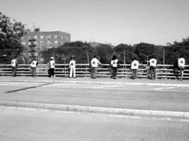 The printed format (18 X24 o r36 in) combines all efforts into a single, basic, portable, easily accessible format of printed-paper. It was decided by the members of sindikat to choose this format to explore its boundaries and also due to convenience and availability of materials. The workshop’s process extends into other areas — performance, public space installations/interactive projects, video and sound. In those instances different formats might be used, but a printed format still remains the main element. However, the printed format always accompanies other projects, as format of documentation. – sindikat is a workshop that unifies people contributing work on the given topic. – sindikat has unity as its goal, which means that the participants do not sign their individual peaces, but, rather, everybody takes credit for the collective end-result. This way, vy da vy is a single unit that undertakes projects. sindikat has as its goal the development of new communication skills that will allow for the dialog between diverse ethnic and cultural spheres. |