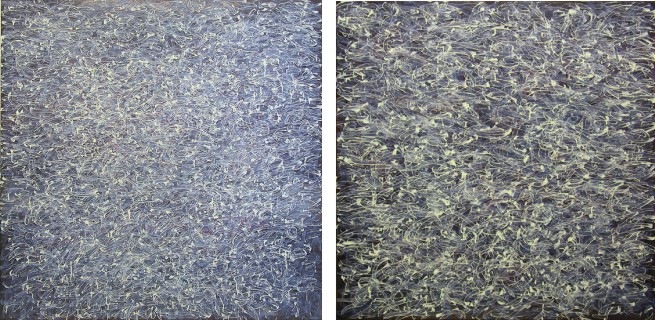 Above images, left; A0329 – Untitled, 2003, acrylic on canvas, 130 x 130 cm and right image; A0333 – Untitled, 2003, acrylic on canvas, 90 x 90 cm