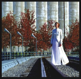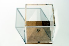 Cees Krijnen at Studio 1.1.Woman in Divorce Battle on Tour 2004.13 February - 24 March.Greta Blok floats across the tracks of an indeterminate railway line. Like Josette Day in 'La Belle et La Bete' she seems to have a joyfully vague notion of where she is going. (Actually it is Montreal at the occasion of the Biennial 2002). It is also Autumn and she is ready; dreamily on her way to a wedding. Ready to kiss the mirror and marry her own true self. With the beast out of the picture a new, self-generated story unfurls.In Cees Krijnen's new show his mother's triumphant recovery from a painful divorce is recorded in the talismans and reliquaries which form a partial narrative as she moves clear of domestic tragedy. The Dutch traditions, or even cliches, of horticulture, domesticity and mercantile wealth are further in evidence in the 'Golden Garden Sprinkler' (2003), prosaically sited at floor-level, yet transfigured by gold-plating and with a diamond more than usually functionless on its plastic pump.