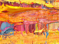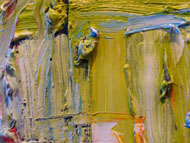history of paint strata on the structure. Rust becomes more dominant on boxcars as they haul commodities from Chicago to the west and back. The city gardens are full of intense colors and textures in the summer. My paintings have much to do with these observations and a keen sense of sight.