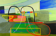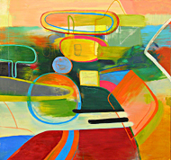 "I have rarely seen a bunch of paintings that so strongly demands engagement and that deals so plainly in the following simultaneities: sensual and cerebral, abstract and figural, planar and spatial, journalistic and subjective. My enjoyment of these paintings is multilayered: they are forthcoming enough that I feel a simple pleasure in their colors, shapes, and sense of space, but they are difficult enough that I feel compelled to make sense of them, to put my mind to them." � Van Lewis, �What Gets Filtered Out by Speed,� 15 Bytes Magazine.