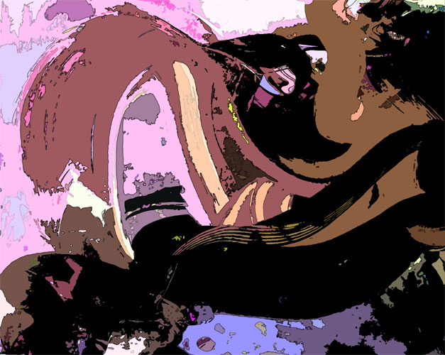 The spill, the drop, the pour, the gesture, the line, the spray, the flat shape, the wet into wet and the painterly drawing exist in a dreamlike synthetic landscape of the artificial. My paintings can be seen in action or motion, flat angular shapes floating in an underwater like space with gestural brushwork swimming through the canvas. The work has the New York School aspirations, swimming dreams of a plastic fantastic landscape and a grown up sense of beauty.