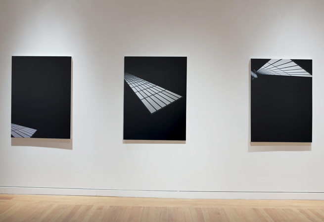 Rafael 1-3 are named after Israel�s Armament Development Authority, where my father used to work. My father, who was also a painter passed away when I was four years old. These paintings, which depict three stages/frames of a surveillance telescope�s movement in space, combine my father�s profession as an engineer working for Rafael, and his passion for painting.