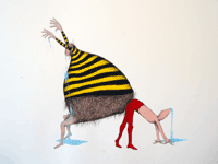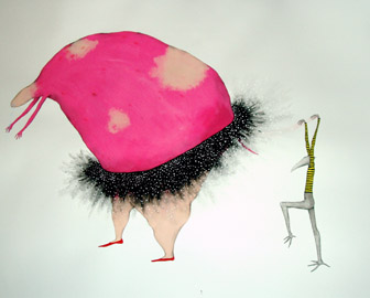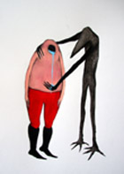 "My work is about what happens when someone does something to somebody or something happens to someone but sometimes someone is simply doing something or thinking something else.I like to create a situation between creatures that look like people or animals but do not have to be either. They simply exist to demonstrate a situation or a state of mind".