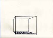 The Fourth Variation is a tarred and featherred painting placed on the floor inside of a Plexiglass cube. The proposed dimensions are: 10'x10'x12'. The cube is open at the top and bottom with a line painted down and across each edge on the outside of the cube. The painted line is the means that unifies the internal to the external.