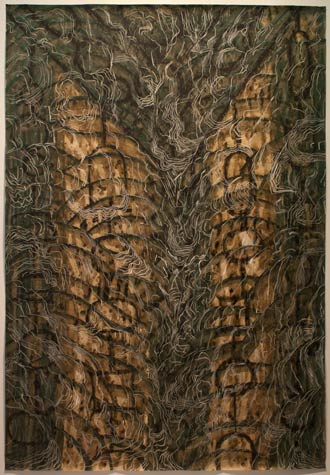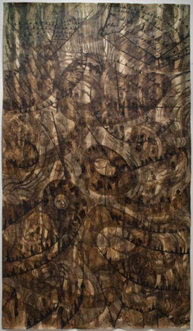 SALTWORKS is pleased to present Alejandro Aguilera's Black Drawings, a series of large works incorporating crayon, ink, coffee and collage on craft paper. Black Drawings represents a pivotal growth period in Aguilera's technical range and subject. The drawings in the exhibition were created in 1998, at a time when Aguilera had recently immigrated to the United States from Cuba and was living in Miami.
