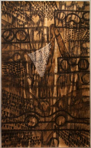 The Black Drawings began as “formal experiments in technique and improvisation inspired by music, textile design through geometrical forms and the natural landscape.” The works then expanded to incorporate early modernist takes on African Art specifically those from the art historical movements of Primitivism, Cubism and Futurism. Since his arrival to Atlanta, Aguilera added the Southern Vernacular Art to his library of influences.