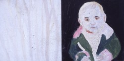 inventory/museum of different artefacts from different situations grouped together in an attempt to document a person's memories. The paintings are mostly in oils on identically sized (6″ x 6″) gesso tiles. The tiles will be placed next to one another forming a pattern when put on the wall. I have in the past taken photographs of houses prior to clearance, and I would like the paintings when grouped together to look like the walls of an empty house, breathing out aspects of the owner's life.Photographs are a significant part of my work, both painting from found photographs of unknown things and people and taking photographs of the interior objects in people's houses. These interiors include the modernist architect Erno Goldfinger, Oleg Meshko a 72 year old Russian emigre and Vietnam veteran, and Maggie Taylor an elderly blind woman for whom I used to housekeep. Although Maggie is blind, her things are still important to her because she has memories of what they are and the associated memories of where they come from; knowing that they still exist is comforting to her. These objects can almost cheat time, they are proof that events and people that no longer exist really did once.