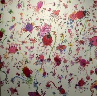 Memory inquires into the birth of my visual image- how it is churned in the imagination, inspired by figure forms that are familiar to be transformed in the mind of the artist and be reborn on canvas. Out of imaginations are born the creative faculties which inspire language, poetry, music, dance, and the visual arts. Imaginative forms such as spidery figures, flowers, and delicate snaking marks that inform my work come from experience, from memory, from the unconscious- the powers of association that link the present to the past and the future.The inspiration of Indian performance and various music selections inspire a language of expression, rhythm, and abstract figures which form pattern on my canvases. The performance play a big part of my life. Dance repeats the movements of the body, and the contour line of the figure becomes an abstraction that reflects in my painting. The gestures of the hands and body move in the same manner as I do my painting.