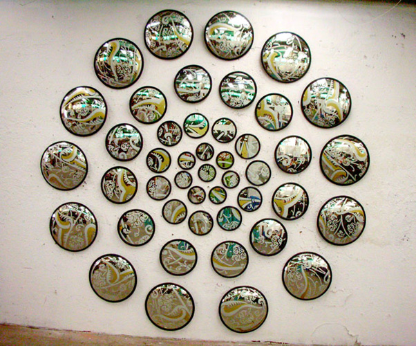 mirrors, sand blasted ornaments
