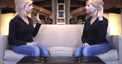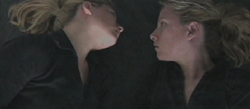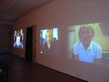 Video has played a prominent role in CarianaCarianne’s work, providing a means for them to visually articulate the body as a politically shared space and extending their investigations of how cultural systems organize conceptions of the self. In a number of projects they use video to record live performances, which they edit using split-screen techniques and later re-present. For many of these works, the original performance consisted of the two selves taking turns performing certain actions, such as falling from a standing position or reading from their separate last wishes in a shared legal will. The videos of the proceedings use a visual doubling effect to compress the two distinct sets of actions so that they occur side by side and unfold simultaneously, giving equal ground to both selves and creating an experience of synchrony.