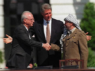 image also spurs questions regarding the potency of contracts. This image, of Arafat and Rabin signing the Oslo Peace Accord, captures the peace accord as possibly the most favored and the most failed doctrine of the 21st century.