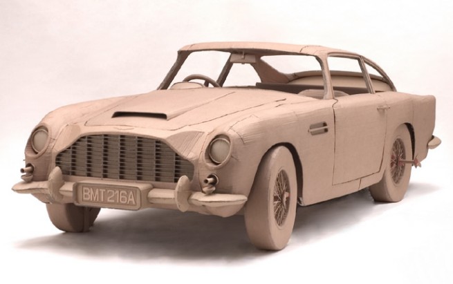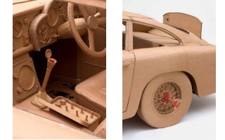 concentrates on the medium in its natural state, often preserving the original printing, tape, and labels to capture an essence of authenticity. By using uncomplicated material that audiences understand and use in everyday li fe, Gilmour again builds on the viewer’s pre-existing associations to create a language that can be comprehended by many. Images : Chris Gilmour Aston Martin DB8, 2006 Cardboard and glue life-size [details] Chris Gilmour Aston Martin DB8, 2006 Cardboard and glue life-size