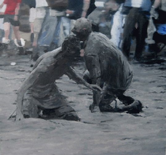 Mud Fight 1 2009 Oil on MDF 30cm x 29cm