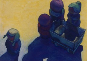 “Fusaro’s series of pastel works applied to wet paper will reunite you with your long lost childhood friends. But be warned – they’ve been through a lot since last you saw them, and you may find they’re not who you thought they were. In ‘Grown-Ups‘, Fusaro uses the familiar toys to tell disturbing tales of America, his own troubled childhood in New Jersey and, ultimately, everyone’s childhood. – The playful toys and the beautiful colors Fusaro uses deceive expectations. These elements lure you in and then before you know it, emotions take over and he puts us back in touch with the equivalent elements in our unconscious, many of which are the same as those in his. Similarly, we come to the gallery as adults, but the depictions of Fisher Price toys send us back to where we started. For the time we stand before the works, we straddle the line between adult and child.” -excerpt from The Villager, NY, feature story & review by Traci Kampel For more information on Darrell Fusaro visit www.DarrellFusaro.com |