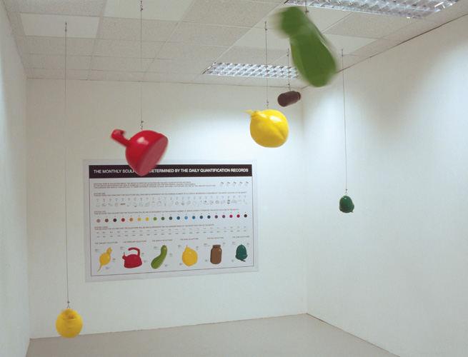 Ellie Harrison is renowned for her large-scale data collecting projects such as Eat 22, Gold Card Adventures and Tea Blog, in which she has recorded information about her everyday routine, over long periods of time. She has also experimented with using this information to question the ‘role of the artist’ and through installations such as the Daily Data Display Wall and The Monthly Sculptures Determined by the Daily Quantification Records, has explored the extents to which the artist’s life can affect the work they produce.