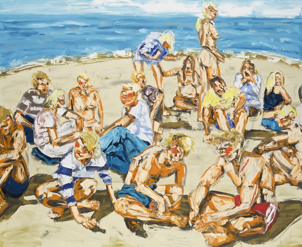 Painting from film stills extracted from sources of popular culture, McReynolds explores how an image can be broken down through multiple layers of appropriation, from film to video to digital media to paint. Depicting group activities such as party scenes, sun bathing and show-boat performances, McReynolds magnifies the contrast between the immediacy of spectacle and the slow reveal of an event’s details. His imagery lingers in the in-between depicting moments in transition. Relishing this space between cause and effect, McReynolds bestows the mundane activities of a self-congratulating American culture with a sense of seduction, violence, intrigue and suspense.