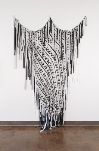 The process of weaving used to create the Coverings connects with traditions of craft. The sculptures hint to a utilitarian existence while falling short of explicitly expressing a purpose. Instead, the Coverings bring about multiple associations—tents, military camouflage netting, and architectural spires. They conjure ideas of shelter, containment, costume, or something more sinister. Yet what they cloak is hardly out of view. We are forced to encounter the Coverings as a paradox—both veil and object, which continually shifts our focus between what we understand as the surface and what we expect it to hide.