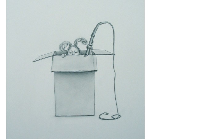 In his spare, humorous and dark depictions of children in fantastic and disturbing settings Biel’s images leave a strong visual and psychological mark. In all of the imagery in this exhibition, children or child-like figures take on adult roles or engage in the power roles of an adult world. They can seem menacing or controlling but their degree of power is always tentative, slightly ridiculous and possibly more dangerous because of this. The images can be both grandiose and obscene.