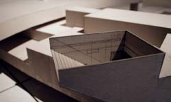 Alexanderplatz, built object with drawings, 2006 Materials: grey cardboard, scotch tape, pencil and bricks Approximate scale: 1 footstep = 1.5cm cardboard Dimensions: 740cm (L), 460cm (W), 50cm (H)