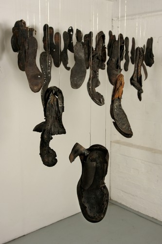 My work explores the narrative behind found or discarded objects. These objects can be shards of wood, pieces of plastic, leather shoes, broken toys. What they have in common is a fragmented history. They were once part of a culture, one which has now discarded them, but they remain part of our environment. There is an analogy between discarded objects and the dislocation that individuals may feel when they are exiled from their place of origin. Working with a variety of cultural artefacts, the theme of identity provides the connection. Collecting can be a way of exploring identity as well as being a way of addressing past loss and future uncertainty. Collecting introduces meaning, order, boundaries, coherence and reason into what is essentially disparate, confused and threatening. The selection of partcular objects provides a key to exploring one’s inner world by mirroring and self evaluation, ‘you are what you keep’. I create alternative stories in relation to the artefacts I find. I want to understand their importance for me. In doing so I am often drawn to my own native Indian culture, trying to interpret my present surroundings with distant, yet significant childhood experiences in mind.