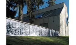 Much the same sense of the somatic peril was elicited in two site-specific installation pieces created for Black & White Gallery in New York. (Wave, 2005 and Fall, 2007.) Here, the images�which were installed both indoors and out�threatened to inundate the viewer with a cataract of falling water. The 200-foot long waterfall installed on the low retaining wall (Rising Water/Falling Water, 2006) in front of the Katonah Museum of Art had other implications . The museum is surrounded by reservoirs that supply the water to New York City. All this water is, of course, held back by dams that are�according to the authorities�prime targets for terrorism. Nature is lovely to look at but much harder to control than we would like to think. |