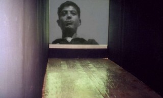 This 4mn 29sec monologue is the center piece of the movie and until today, the impact it left in the memory of All Arabs and Egyptians is alive, it moved the populations for it very accurately reflected the state of society at that time. – In year 2003, I took a video of Chirine el Ansary, Egyptian storyteller. She is standing in the middle of a Down Town Cairo coffee shop and is repeating the monologue as it was in the movie, but on the spur of the moment. – In The Echo, the two sequences are taken and projected in front of one another, echoing each other, thus pointing at the stagnant political and social situation of the last 70 years. Nothing has changed, what could be said in 1933 and 1968, remains valid in 2003. – RIGHT IMAGE – The Water – A video is projected in a dark room. The floor is isolated and turned into a pond of water. The video shows different portraits relected onto a puddle. The constantly moving nature of water makes the image unstable, showing the insecurity of human beings. Nevertheless, as soon as the image seems to stablize, it is broken by an unknown foot brutally stepping over the face. The viewer who enters the room steps on the water, where his own face and the faces of the other viewers are reflected, thus repeating the action of the video. |