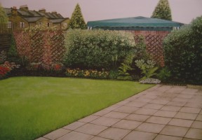 For what seems like landscape painting, I have in fact recreated scenes from the background photography in the Argos catalogue, removing the �outdoor and leisure� commodities and liberating the gardens from their consumerist trappings. These imaginary worlds based on a scene from the catalogue become fetishised through the use of paint and through the new invented space with all its added extras. Happily devoid of artistry or passion, my paintings are small, the size you would find on the average living room wall, and complete the transition from the consumer object in the catalogue to becoming the consumer object as the painting. |