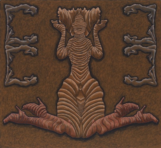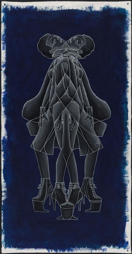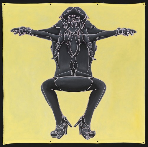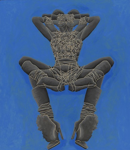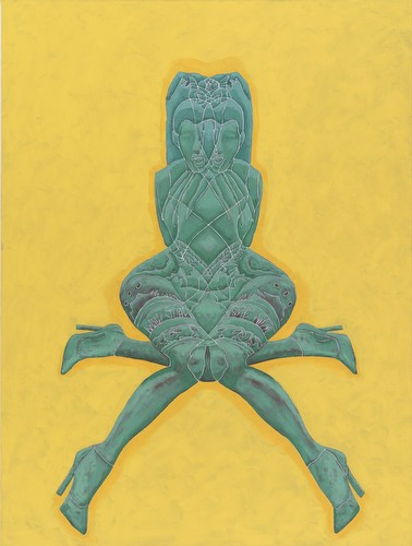 I work in series, which variously reflect my interest in social dynamics. Most of the imagery submitted addresses the impact of commercial media representations of women. My appropriation and replication of their contours reflects the shaping of personal narratives/identities forged from ubiquitous, media manufactured archetypes. The cult of the individual has become one of emulation, leading, in various degrees, to a post-feminist re-embrace of our own objectification. The “Appearances” paintings simulate the worldly beauty/ power of historic Eastern deity icons such as Buddhist images of Bodhisattvas-charged with guiding souls to spiritual perfection- and in these works links it to the visual supremacy of media ‘goddesses’. My tracings and manipulated fusions of these perfected bodies and my resultant distortions are intended to resonate with the troubling consequences of identities built on commercial desire. “Temple Construction” is a category of works that includes groups of paintings, “Turning to Stone” and “Freeze”. The imagery and titles reference the hierarchy of power and devotion that the beauty industry inspires. The dimensions of the works, Turning to Stone, resonate with those required for a career in modeling- and depicts fashion figures totemically, as deity icons in a temple frieze, ‘biblically’ turning to stone in contemplation of ‘high end’, ‘must have.’ accessories. In the “Traffic” series, I use the neutrality of sign figuration to fashion a codex, to map less visible dynamics of the social landscape- here the intersection of beauty and desire, the media, and human trafficking.