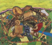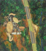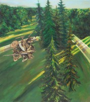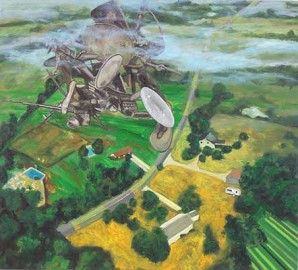 My work includes drawings, paintings and sculpture involving, in one way or another, plastic figures within the landscape. These figures or clusters of figures are part of imaginary � gamescapes,� where the characters are incorporated into a game environment where all can be subject to chance, luck, and competition. The idea that the hero representations of the Western World can and are produced by the millions with cheap plastic, most likely in China or Taiwan, is something I find quite fascinating.