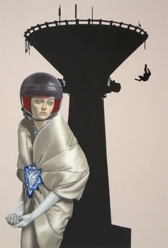 The sustained and continual experiencing of time are themes found in the allegorical character of Sandra Ackermann’s women, whose composure appears at rest, even in moments of high pathos. The permanence of composure almost removes them from the here and now, they become timeless, much like saints in more traditional painting. A parachutist or an ascending space shuttle are, on the other hand, entirely caught up in a temporary process, that manifests the passing of time, and impermanence as such. And, again, the combination of motifs reveals a contrast. The pictures stand with one foot in the past and with another, due the choice of motif, in the perpetual present.