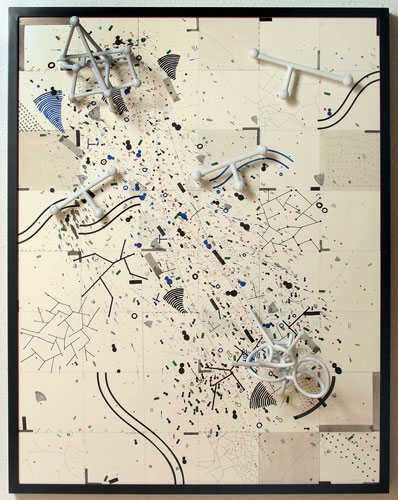 Defensive Position, 2005 48 1/2 x 38 x 10 3/4 (in) ink and watercolor on paper, dye on cast aluminum, enamel on aluminum