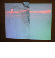 The actual fracture and the projected video are in a particular binding that expands the reading of both projection and physical space |